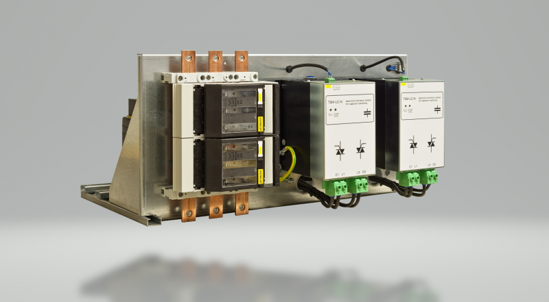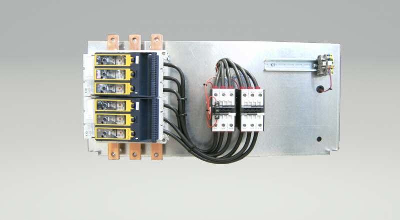 - intergriertes Sammelschienensystem 630A mit NH-Sicherungslasttrenner je Stufe und superflinken NH-Sicherungen zum Schutz der Thyristoren